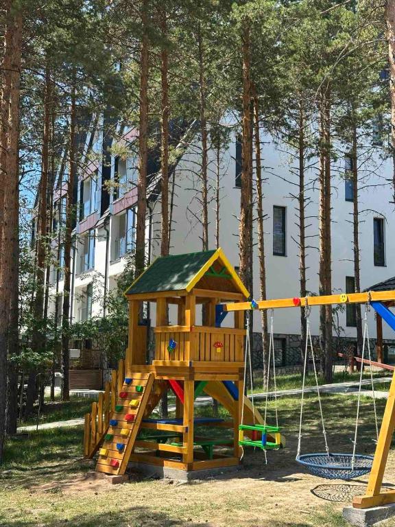 Porodice koje putuju sa decom mogu koristiti sadržaje kao što je društvene igre, prostor za igru unutra i igralište na otvorenom u Dorin Kutak, Green Hills Divčibare.